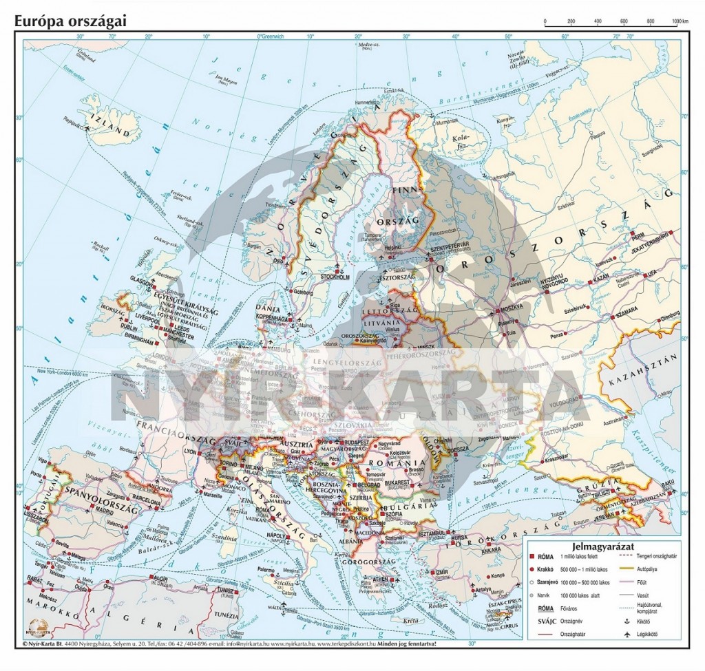 Nagyméretű falitérképek elkészítését vállaljuk akár egy példányban is. A falitérképeket korszerű, saját óriásplotterünkön nyomtatjuk ki, maximálisan 150 cm szélességben és korlátlan hosszúságban. Ennél nagyobb méretre is van lehetőség, két vagy több csík alig észrevehető összeillesztésével, majd le fóliázásával. Műszaki rajzok, plakátok és egyéb hozott anyagok nyomtatását is vállaljuk, technikailag egyeztetett anyagleadást követően. A 126×89 cm-es vagy ennél kisebb méretű falitérképek száz példány feletti nyomtatása már nyomdában történik, nyomdai minőségben.